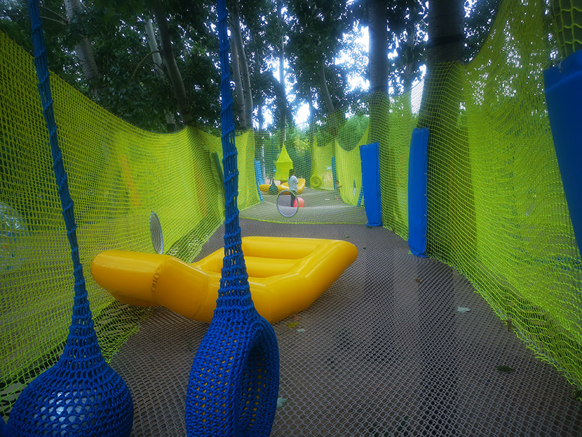帶有繩子攔截的障礙區(qū)域,增加玩耍的難度,鍛煉孩子們的應(yīng)對能力。